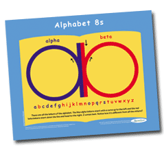 Integrate the Movements Involved in Writing. The Alphabet 8s Chart is a hands-on teaching aid, designed so that children can use their fingers to trace the letters of the alphabet right on the chart. The word ‘alphabet’ comes from the root words of ‘alpha’ and ‘beta’. Once we put together the ‘alpha’ and ‘beta’ shapes of the Lazy 8, we can easily learn the whole alphabet. Young learners who read or write backwards often can’t see what they are doing wrong. As these students physically follow the letter, their visual confusion is resolved.