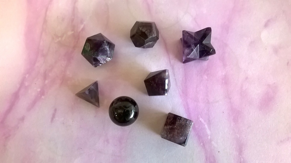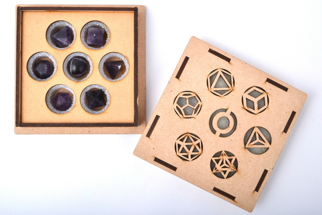 These 7 crystal sets contain the 5 Platonic Solids plus the Merkaba & Sphere.